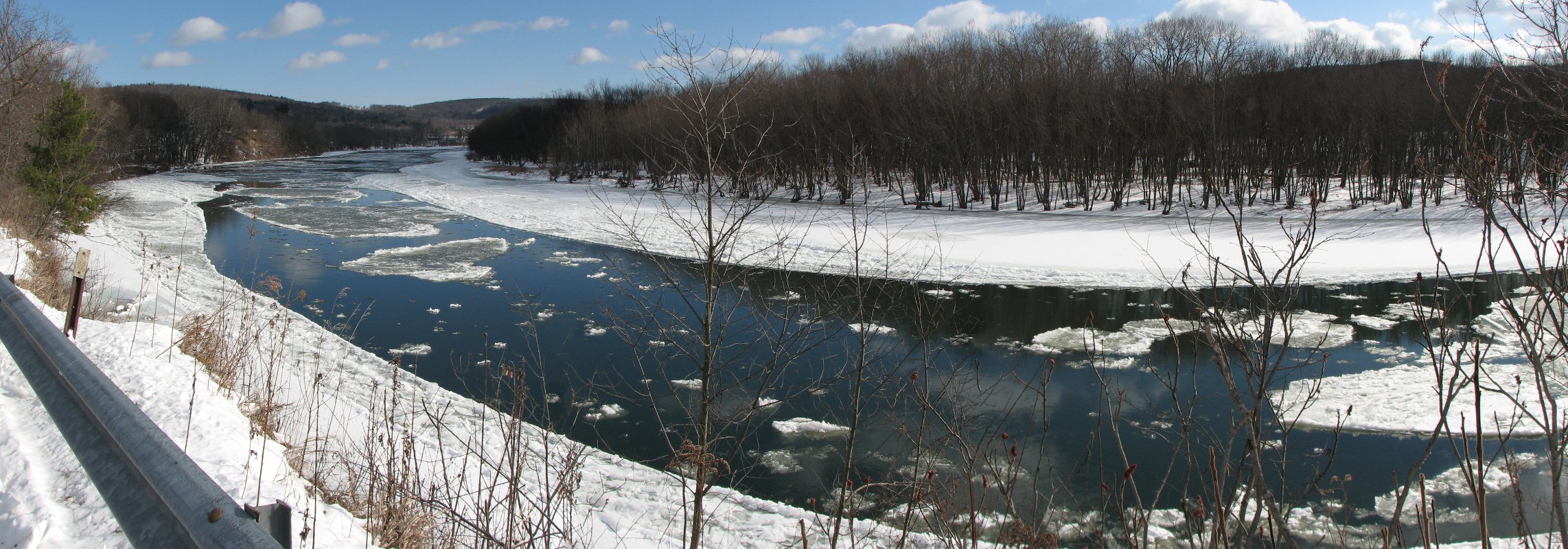 Photo stitch image. Frazil pans on the Susquehanna River just west of Barton, NY
