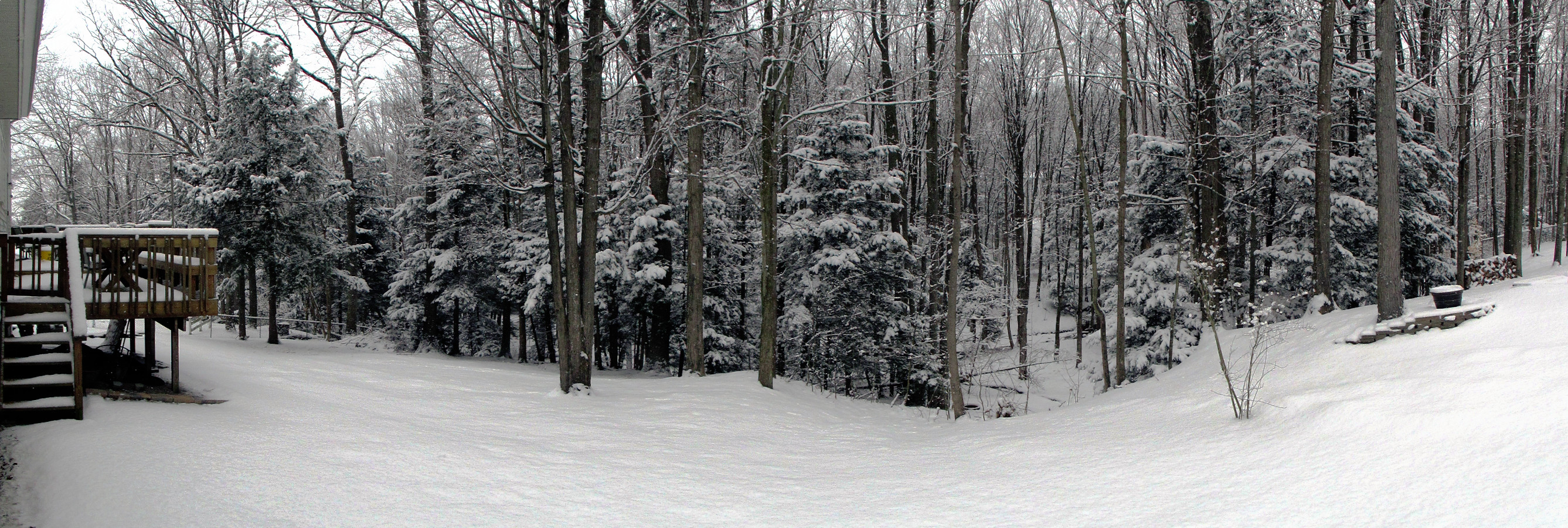Photostitch of the backyard after a fluffy snow fall.