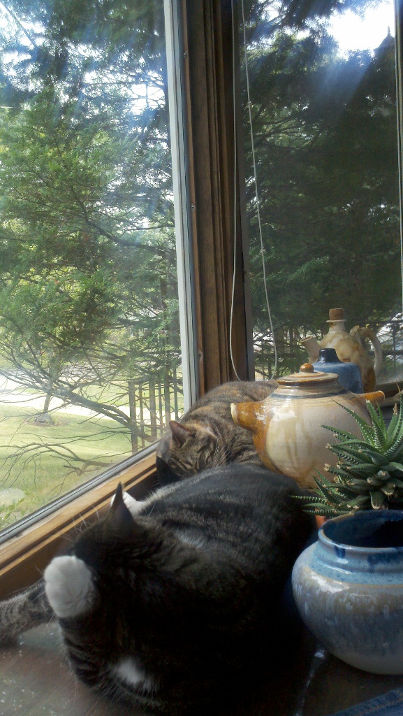 Shot of both lying in the window.